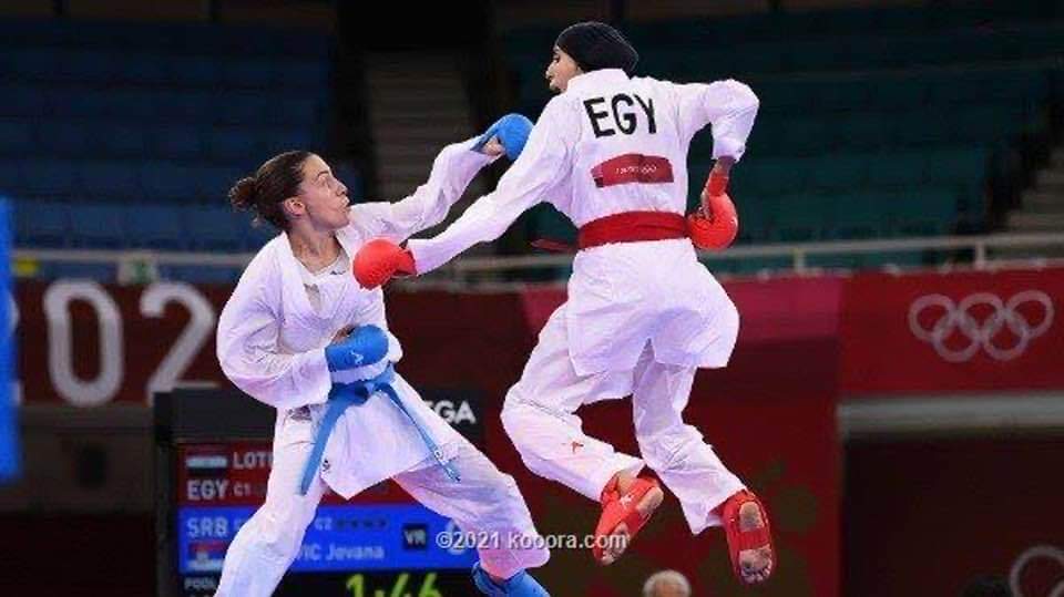 توجت لاعبة منتخب مصر للكاراتيه جيانا فاروق بالميداليه البرونزيه للكاراتيه في اطار منافسات اوليمبياد طوكيو للكاراتيه