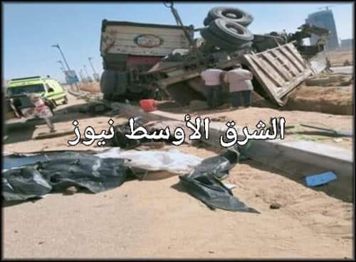 حادث تصادم  مروع بين سيارة نقل وميكروباص بطريق السويس بالصور