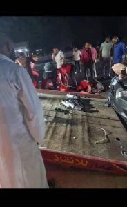 وفي لحظات اتت سيارة مسرعة اصطدمت باحدى الشباب المنقذ للحادث راح ضحيتها الشاب احمد من شباب مدينة النوبارية.