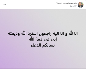“إنا لله وإنا إليه راجعون، استرد الله وديعته، أبى فى ذمة الله نسألكم الدعاء”.