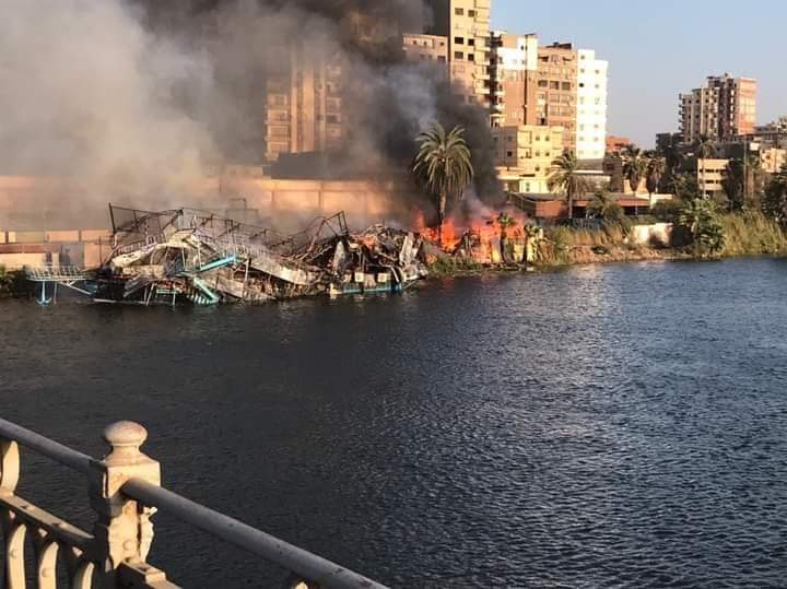 وكانت المركب ترسو على الشاطئ وهرع روادها إلى الشاطئ هربا من نيران الحريق، كما التهمت النيران جزءًا من حمام سباحة نادي ميت غمر.