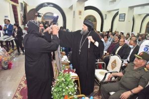 شهد اللواء عصام سعد محافظ أسيوط واللواء أركان حرب محب حبشي قائد المنطقة الجنوبية العسكرية حفل التجليس الـ 35 للأنبا لوكاس أسقف أبنوب والفتح وأسيوط الجديدة ورئيس دير الشهيد مارمينا العجايبي (المعلق) بجبل أبنوب