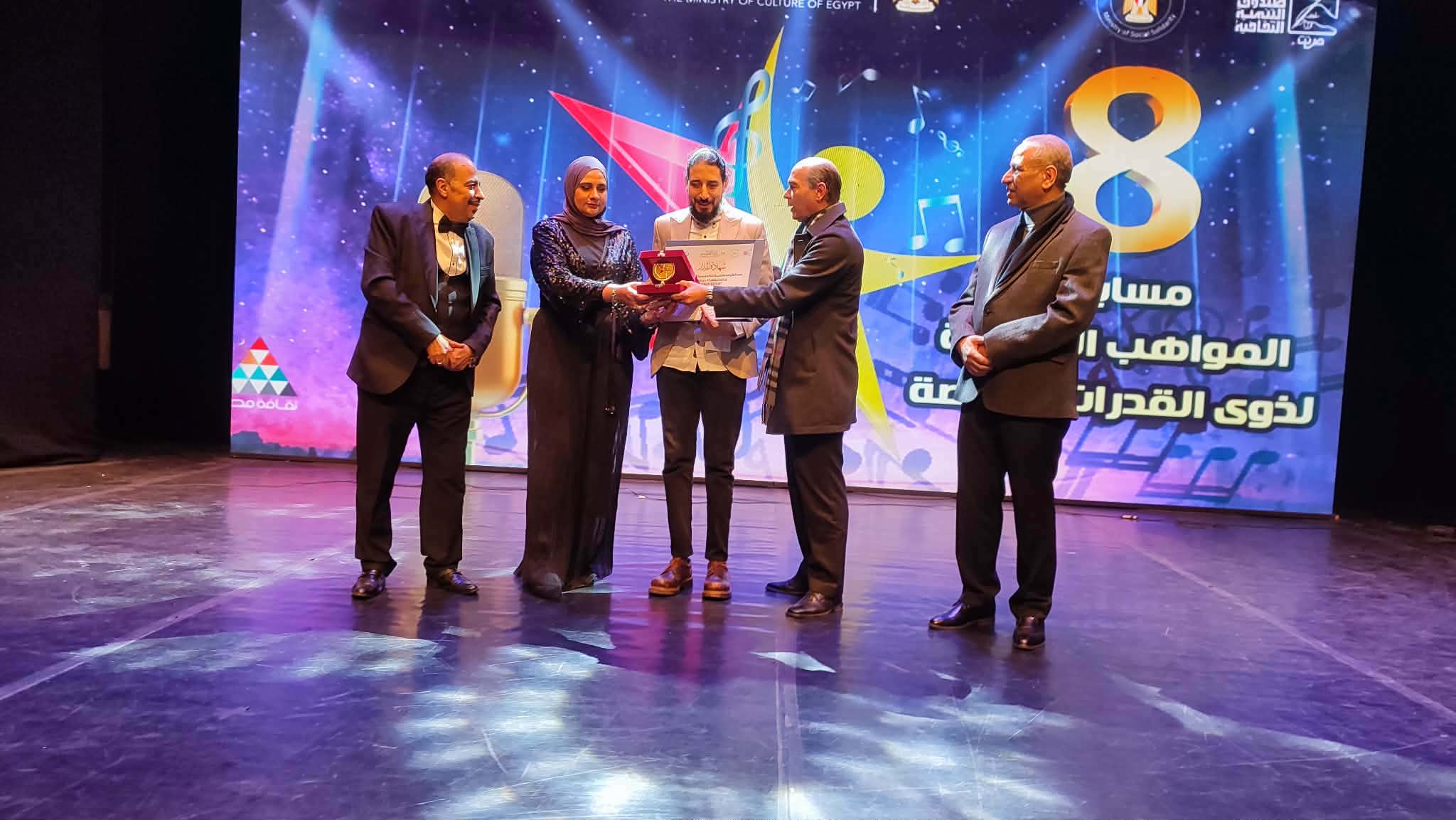 احتضنت دار الأوبرا المصرية أمس حفل توزيع جوائز الموسم الثامن من مسابقة “المواهب الذهبية” لذوي الإعاقة، التي تنظمها وزارة الثقافة ممثلة في قطاع صندوق التنمية الثقافية، بالتعاون مع جمعية البلد اليوم للتنمية الاقتصادية والاجتماعية، في إطار حرص الدولة على دعم وتمكين ذوي الهمم وإبراز طاقاتهم الإبداعية.