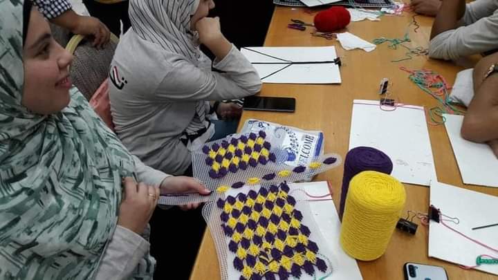 حيث قام بتعليم الشباب كيفية تنزيل الرسمة على القماش باستخدام المدق من الفحم من خلال الرسومات المفرغة ورسمها بالقلم بعد ذلك، بجانب تعليم الغرزة السحرية وكيفية الخياطة بها مع المنحنيات للرسمة والخطوط، وكيفية عمل الشكل الإسلامي والعربى.