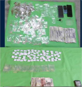 (مبالغ مالية – طبنجة صوت –فرد خرطوش – 2 طلقة خرطوش – 63 هاتف محمول – 3 سيارة – 5 دراجات نارية – 2 ميزان – 12 قطعة سلاح أبيض – 4 قطع مشغولات ذهبية).