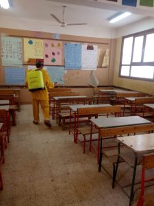 وقد كلف اللواء أحمد راشد محافظ الجيزة رؤساء الأحياء والمراكز والمدن بالتعاون مع قيادات مديرية التربية والتعليم ومدراء الإدارات التعليمية كلا في نطاقه لتكثيف حملات الرش والتطهير والتعقيم للمدارس.