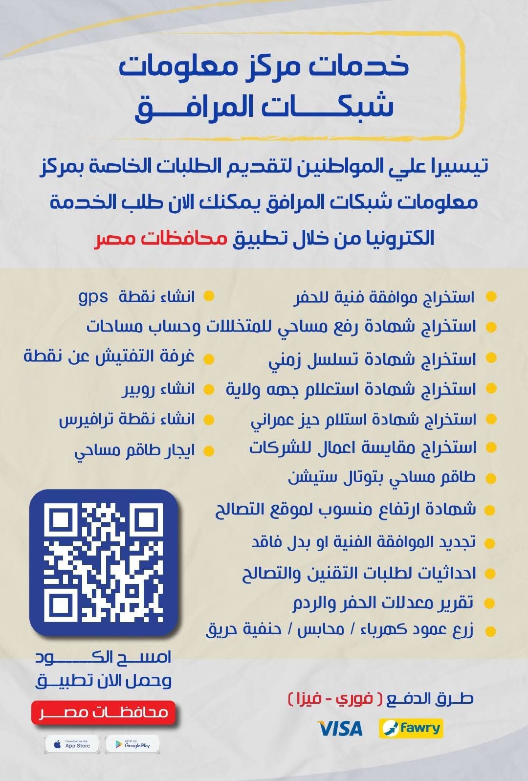 في إطار توجه الدولة نحو التحول الرقمي وتطوير الخدمات الحكومية، تعلن محافظة الدقهلية عن إتاحة خدمات مركز معلومات شبكات المرافق إلكترونيًا عبر تطبيق تطبيق محافظات مصر.
