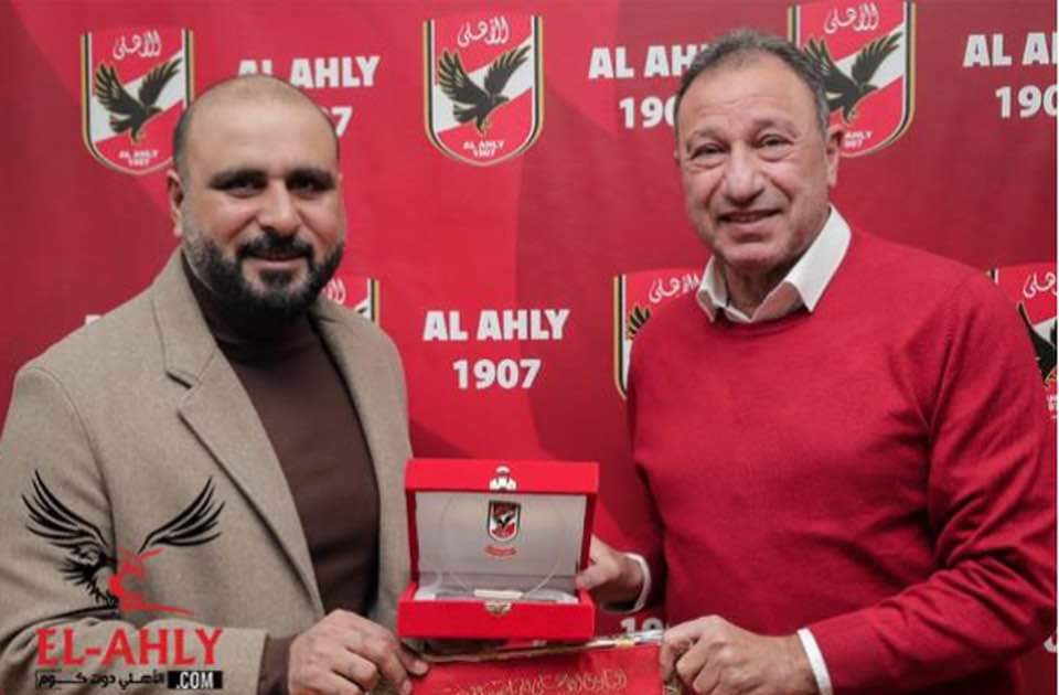 رئيس النادي الأهلي يمنح درع وعلم النادي  للمذيع العماني خليل البلوشي