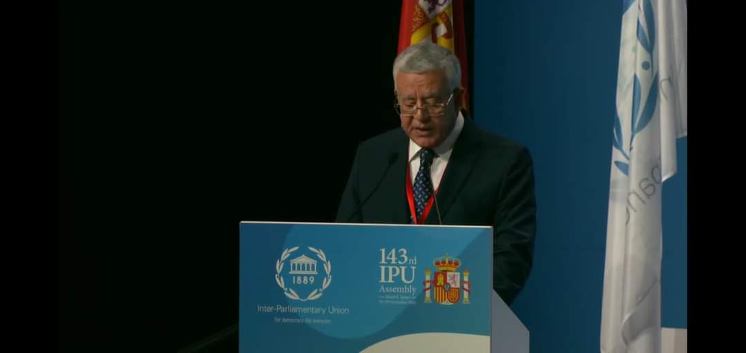 جاء ذلك في إطار مشاركته على رأس وفد برلماني رفيع المستوى في أعمال الجمعية الـ 143 للإتحاد البرلماني الدولي، والاجتماعات ذات الصلة، والمُنعقدة في العاصمة الإسبانية مدريد .