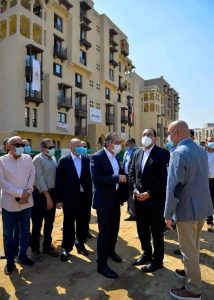 وفيما يتعلق بالموقف التنفيذي الحالي للعمارات السكنية، أشار وزير الإسكان إلى هناك 77 عمارة جار العمل بها، وعمارتين تحت الدراسة، لافتا إلى الانتهاء من الهيكل الخرساني والمباني لـ 27 عمارة، كما أنه جار العمل على استكمال الهيكل الخرساني لـ 27 عمارة أخرى، بينما يتم حاليا الانتهاء من تنفيذ الأساسات والدور الأرضي للعمارات المتبقية، موضحاً أيضا أنه جار العمل في تنفيذ الواجهات والتشطيبات الداخلية لعدد من الوحدات السكنية.