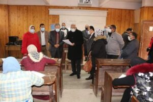 وتفقد أعمال الامتحانات بكلية التربية النوعية رافقه خلال الجولة أ. د محى الدين العلامى عميد كلية التربية النوعية، ا.د ابراهيم احمد وكيل الكليه لشؤون التعليم والطلاب، أ. د محسن الغندور.وكيل الكليه لشؤون البيئه وخدمه المجتمع، أ. د أمانى الجمل وكيل الكليه للدراسات العليا والبحوث وعدد من اعضاء هيئة التدريس.