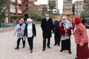 أ. د امل القداح وكيل شئون البيئه ، أ. د فايزة احمد وكيل الكلية لشئون التعليم والطلاب أ. د فاطمه شحته وكيل الدراسات العليا كما رافقه أ. د جابر طلبه عميد الكلية الاسبق الاستاذ الدكتور سميه عبد الحميد والساده رؤساء الاقسام أ. د سماح خميس رئيس قسم اصول تربيه الطفل وا. د الدكتور وفاء ابو المعاطى منسق قسم العلوم الاساسيه، أ. د جمال فايد