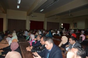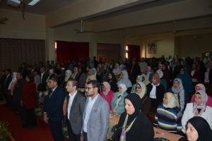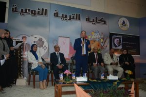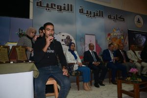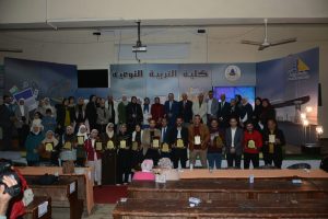 والنشر العلمى الدولي والحاصلين على الدرجات العلمية المتنوعة بمسرح كلية التربية النوعية.