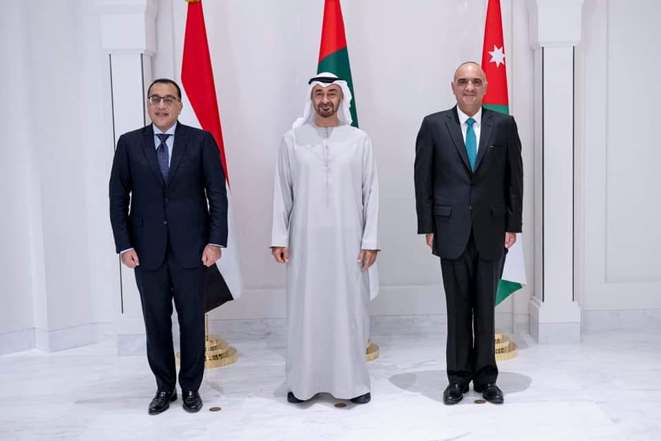 وخلال اللقاء، أعرب سمو الشيخ محمد بن زايد عن سعادته بما تم التوصل إليه من إطار متميز للتعاون بين دولة الإمارات، ومصر، والأردن، من خلال مبادرة الشراكة الصناعية التكاملية لتنميةٍ اقتصاديةٍ مستدامة، مؤكداً على الحاجة الماسة لمثل هذه المبادرات لأنه لا سبيل أمامنا إلا التكامل من أجل مواجهة ما يموج به العالم من أزمة حادة، وهو ما يستدعى تعزيز أطر التعاون والتكامل والشراكة بين دول المنطقة العربية، واستكشاف فرص وصيغ جديدة للتعاون.