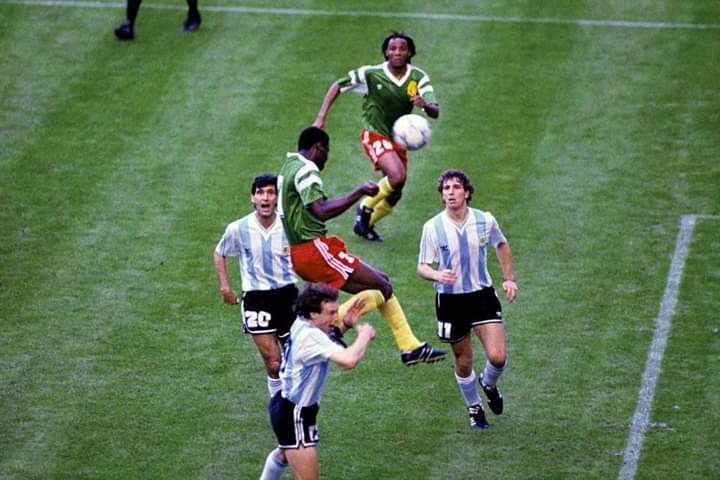 الأسود الكاميرونية في ملحمة كبري يسطروا في المونديال تاريخاً كبيراً للقارة السمراء بالفوز على التانجو الأرجنتيني بهدف المهاجم ” فرانسوا أومام – بييك ” فى الدقيقة السابعة و الستين من عمر المباراة برأسيته و الذي صعد فيها مرتقياً على لاعبو التانجو ” نيستور لورينزو ، نيستور فابري ، خوان سيمون ” ليعلن عن زئيره في السان سيرو و يثأر لأخيه اللاعب ” أندريه كانا – بييك ” الذي طرد من اللقاء في الدقيقة الحادية و الستين من عمر المباراة .