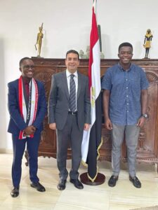 استقبــلَ السفيــر عمـاد حنـا، سفيـر مصــر في أكـرا، أحد الكوادر الشبابية الغانية التي شاركَت ضمن الدفعة الثانية من منحة ناصر للقيادة الدولية تحت شعار “التعاون جنوب جنوب”، والتي أطلقتها وزارة الشباب والرياضة المصرية بالتعاون مع الأكاديمية الوطنية للتدريب ووزارة الخارجية وعدد من المؤسسات الوطنية الأخرى، وذلك تحت رعاية السيد رئيس الجمهورية.