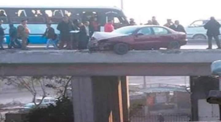 سقوط سيارة ملاكي من أعلى كوبري عرابي بشبرا الخيمة بالقليوبية