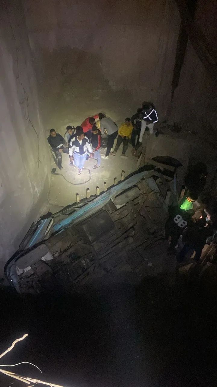 سقوط ميكروباص داخل حفرة بعمق 6 متر ناتجة عن أعمال إنشائية فى الزاوية الحمراء.