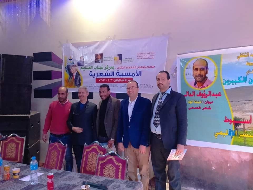 أقام قصر الثقافة بمركز الغنايم باسيوط امسية شعرية كبري،وذلك بتاريخ اليوم الأحد الموافق 21 /3 لعام 2022 حيث استضاف فيها الشاعرالدكتور مصطفي رجب ، و الشاعر الاستاذ احمد الخطيب، الشاعر الاستاذ احمد راشد ، الشاعر الاستاذ علي سراج ، وقام بتقديم الأمسية الشعرية الشاعر ياسر النجدي صاحب صالون النجدي الثقافي بالغنايم واقامة الأمسية وفق إجراءات احترازية مشددة لضمان السلامة بين الحضور .