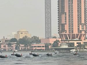 واستعراض مهارات قوات الإنقاذ النهري، باستخدام أحدث المعدات المزينة بالأعلام، بمصاحبة وعزف لموسيقات الشرطة، والالتفاف حول نافورة النيل، إلى جانب بعض البيانات العملية التي أظهرت جانباً من الدور الذي تضطلع به الإدارة في تأمين المسطح المائي على مستوى الجمهورية، وما يبذله رجال الشرطة من جهود من أجل استقرار الوطن وأمنه.