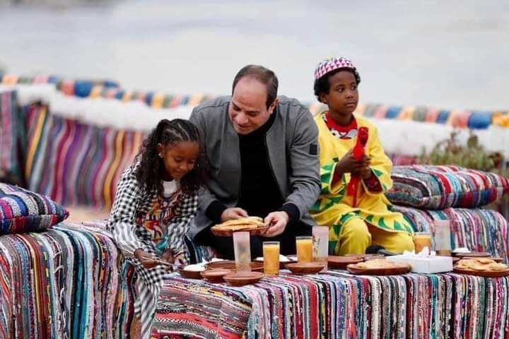 علشان كده قدر يوصل للصورة اللي حضرتك شايفها دي ويمشي وسط شعبه لأنه متأكد من صدقه وإتقانه للقول والفعل وده بينعكس علينا كلنا لما بنشوف الريس ماشي وسط أهله وأولاده واحفاده وبيتصور معاهم ويقعد ويأكل ويشرب معاهم بدون اي تكليف وبمنتهي التواضع…