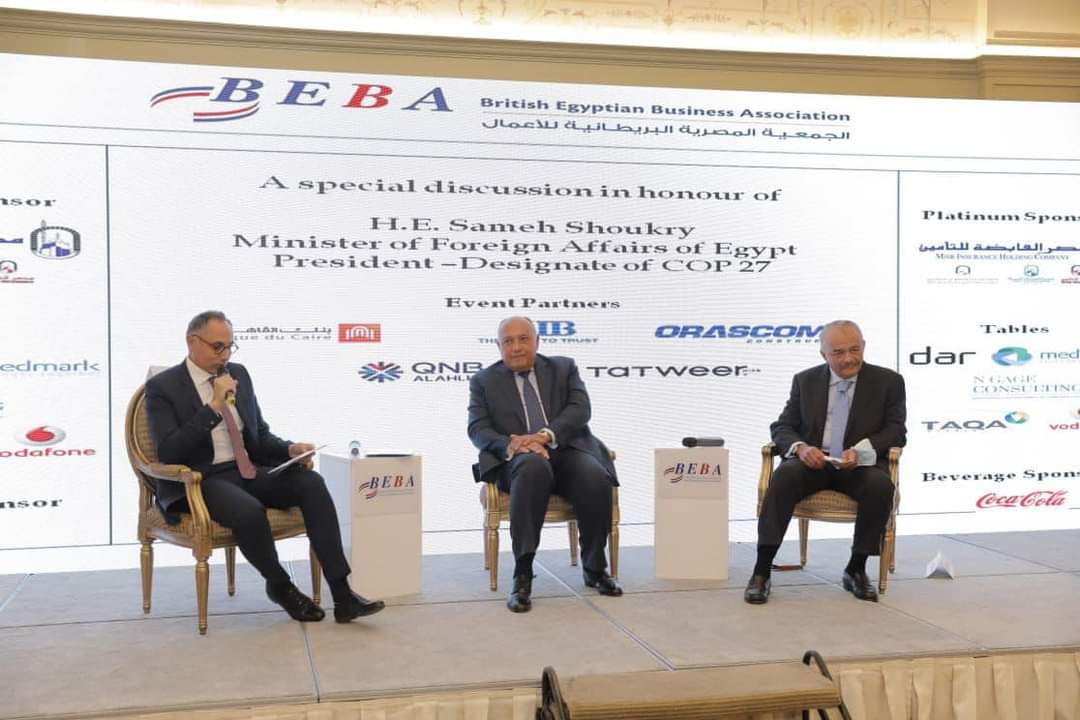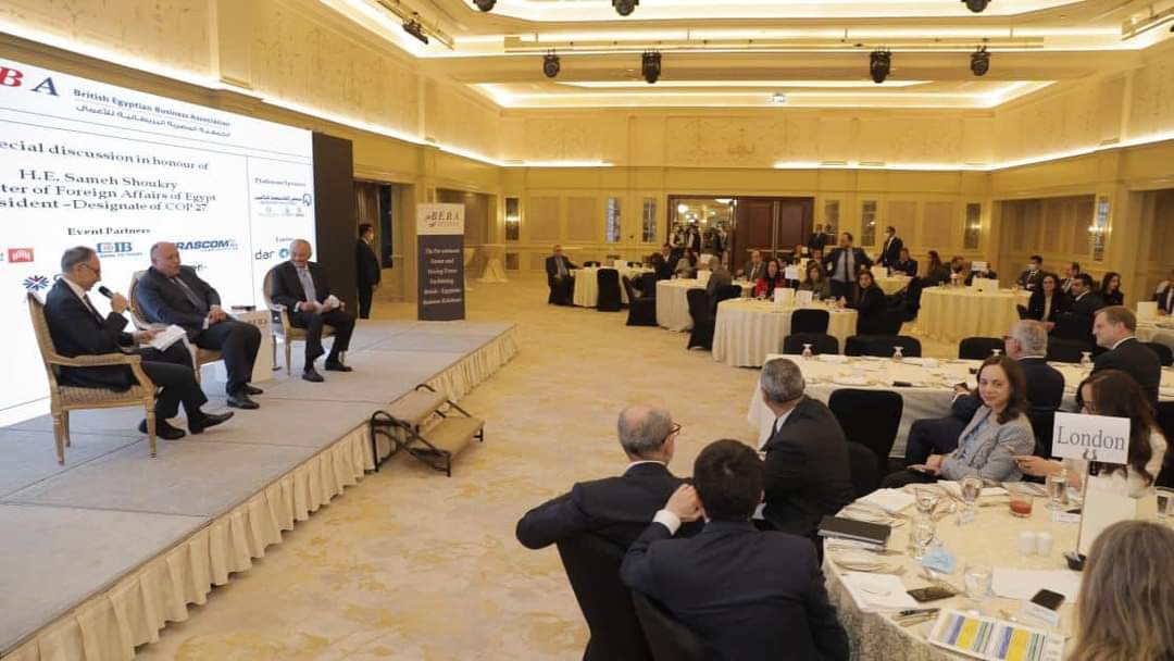 وصرح المتحدث الرسمي باسم وزارة الخارجية السفير أحمد حافظ، بأن وزير الخارجية أشاد في كلمته بالدور الذي تضطلع به الجمعية في تعزيز العلاقات التجارية والاقتصادية بين مصر وبريطانيا، معرباً عن التطلع إلى أن يُسهم هذا الحدث في تعزيز الجهود الجارية للتحضير للدورة 27 لمؤتمر أطراف اتفاقية الأمم المتحدة الإطارية لتغير المُناخ.