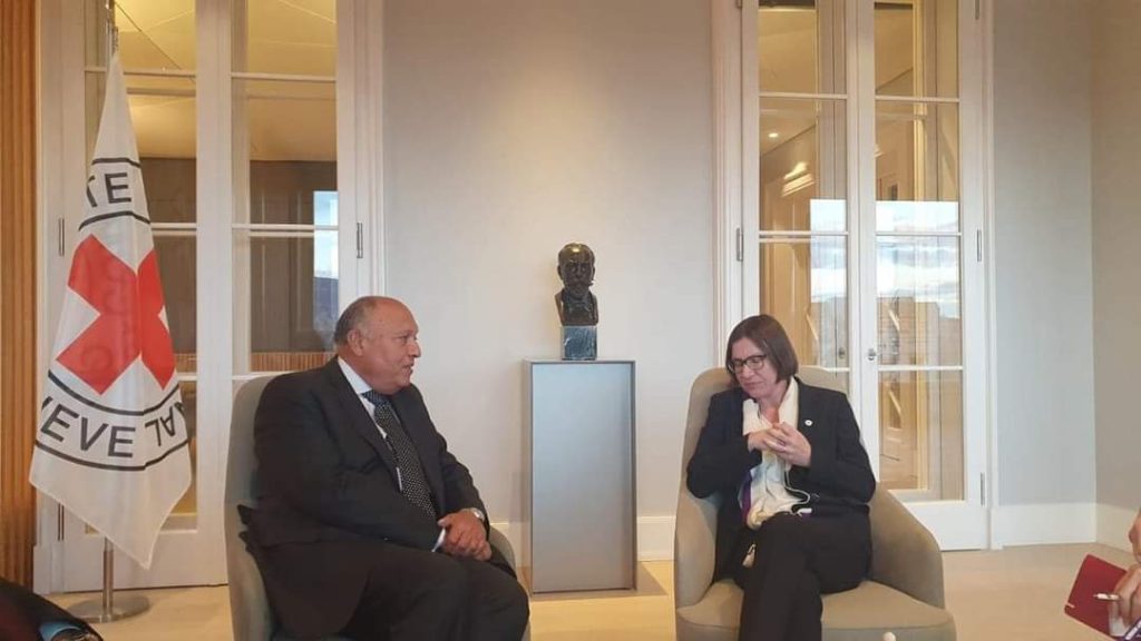 جاء ذلك خلال اللقاء الذي عقده الوزير سامح شكري، اليوم الاثنين، مع ميريانا إيجر رئيسة اللجنة الدولية للصليب الأحمر، وذلك على هامش مشاركة الوزير في اجتماعات چنيف الخاصة بالشق رفيع المستوى لمجلس حقوق الإنسان، ومؤتمر نزع السلاح.