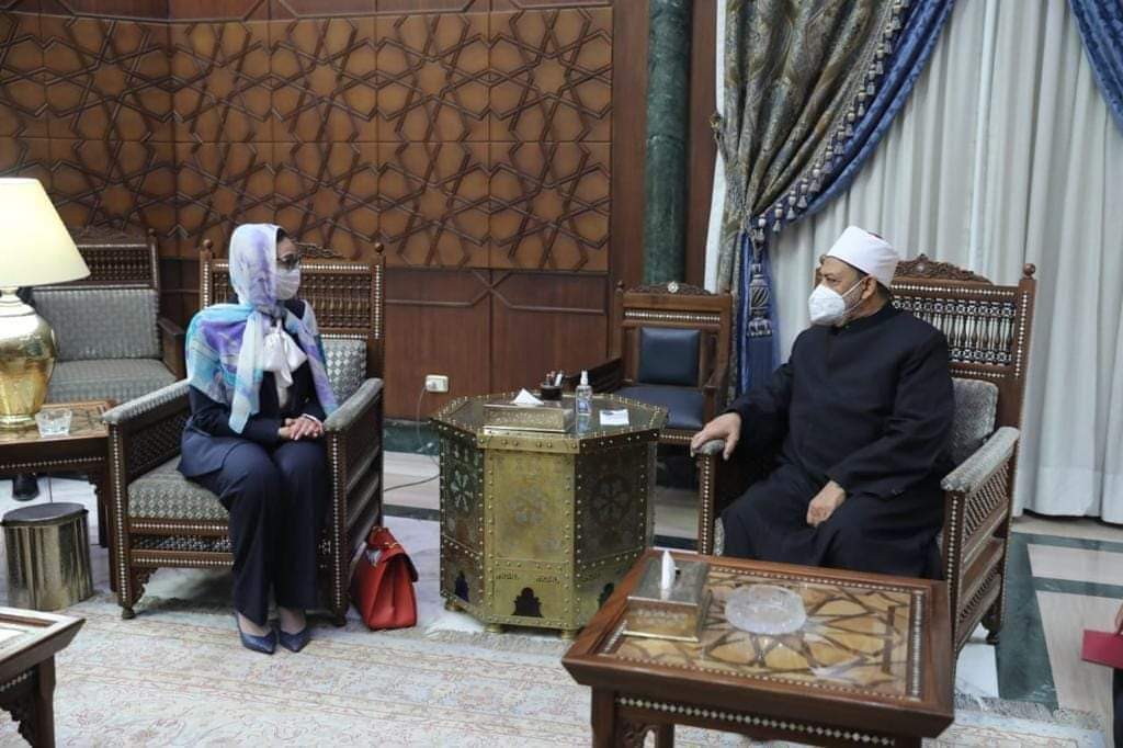 استقبل فضيلة الإمام الأكبر أ.د أحمد الطيب، شيخ الأزهر الشريف، اليوم الاثنين بمقر مشيخة الأزهر، السفيرة هايدي سري، قنصل مصر العام الجديد بمرسيليا وجنوب فرنسا.