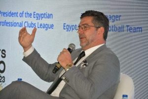 صبحي يشهد الجلسة الحوارية الرابعة بالمعرض الرياضى الدولى تحت عنوان “تطوير كرة القدم”