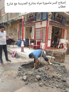 * إصلاح كسر بماسورة مياه واعادة الشيء لاصله بشارع المدرسة مع شارع خطاب .