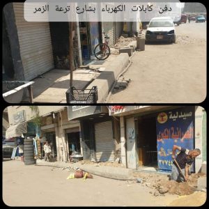 * دفن كابلات الكهرباء التي تشكل خطورة لارتفاعها لمستوي الطريق بشارعي ترعة الزمر مع شارع الهادي وكذا تقاطع شارع الهادي مع شارع باسيلي .
