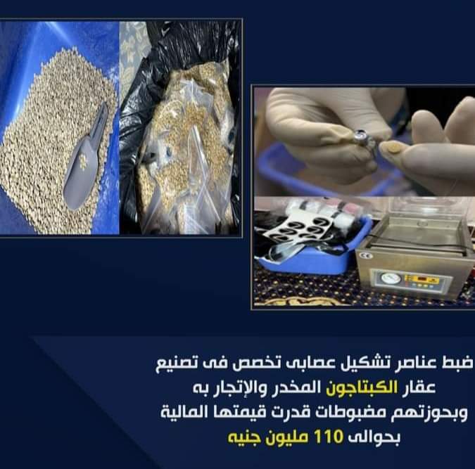 عقب تقنين الإجراءات تم إستهداف عناصر التشكيل حال تواجدهم بمسكنهم بدائرة مركز شرطة بلبيس_بالشرقية ، وعُثر بحوزتهم على (عدد 505 ألف قرص مخدر لعقار الكبتاجون – كمية من عجينة أقراص الكبتاجون وزنت 800 كيلو جرام معدة للكبس تقدر حال إنتاجها بعدد ( 2,400,000 ) إثنان مليون وأربعمائة ألف قرص