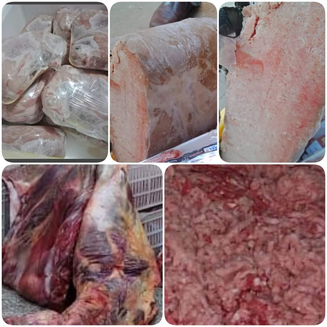 ثلاجة لحوم غير مرخصة وتم التحفظ 80 كجم لحوم مجمدة مجهولة المصدر – 21كجم لحم مفروم – 16كجم لحوم قطع غير صالحة للإستهلاك الآدمي .