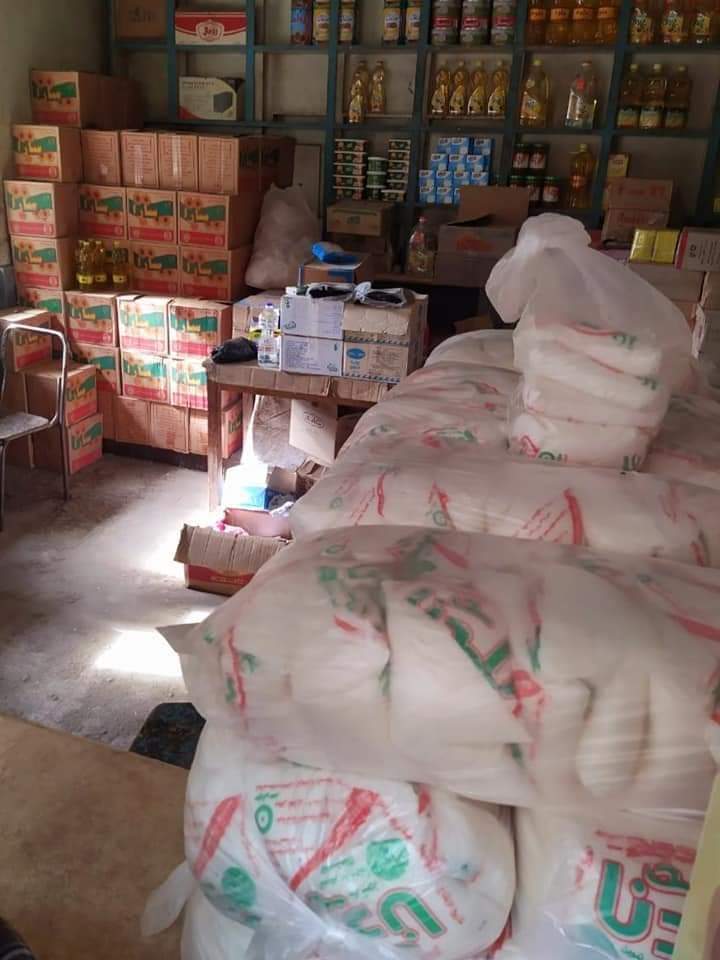 عدد 1 محضر مخزن غير مرخص وضبط سلع تموينية وبيانها كالتالي :-