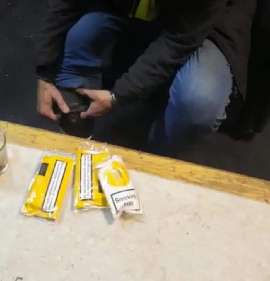 وبالعرض على الدكتور حسين هيكل نائب مدير الجمرك قام بتكليف نجاح لطفي مأمور الجمرك تحت إشراف خالد شعبان رئيس القسم بتفتيشه ذاتيا فتبين وجود 40 كيس تبغ مخبأة حول جسمه وقدميه غير خالصة الضرائب والرسوم الجمركية أفاد بحصوله عليهم بمساعدة زميله له من الأسواق الحرة ومحاولته للخروج بهم هم من صالة السفر للإستفادة من فرق السعر .