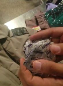 وبالعرض على حسين هيكل حسين نائب مدير الإدارة قرر تكليف امير محمود مأمور الجمرك تحت إشراف أحمد فؤاد حامد مدير إدارة الحركة بتفتيش حقائب الراكب وتفتيشه ذاتيا فتبين وجود 57 شريط لأقراص الترامادول المخدرة 150 مليجرام و4 شرائط لأقراص ترامادول المخدرة 200 مليجرام بكل شريط 10 أقراص بإجمالي 610 قرص ترامادول المخدرة ، و 21 ألف دولار أمريكى و 350 عبوة سجائر الكترونية وقطع غيارها ومستلزماتها مخبأة داخل علب الشيكولاته وداخل سجادة والجوارب وسلمجيوب الملابس بحقائبه .