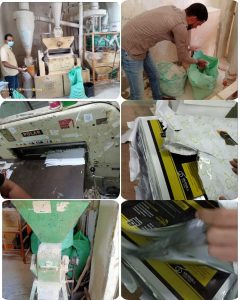 أسفرت عن ضبط 23 شيكارة دقيق بلدي مدعم 82 ٪ وزن 50 كجم 24 شيكارة دقيق محلل زنة 45 كجم مدون عليها دقيق فاخر، 11 شيكارة نخالة زنة 30ك كمية كبيرة جداً من الإستيكارات المطبوعة بأسماء شركات أجنبية داخل مطبعة .