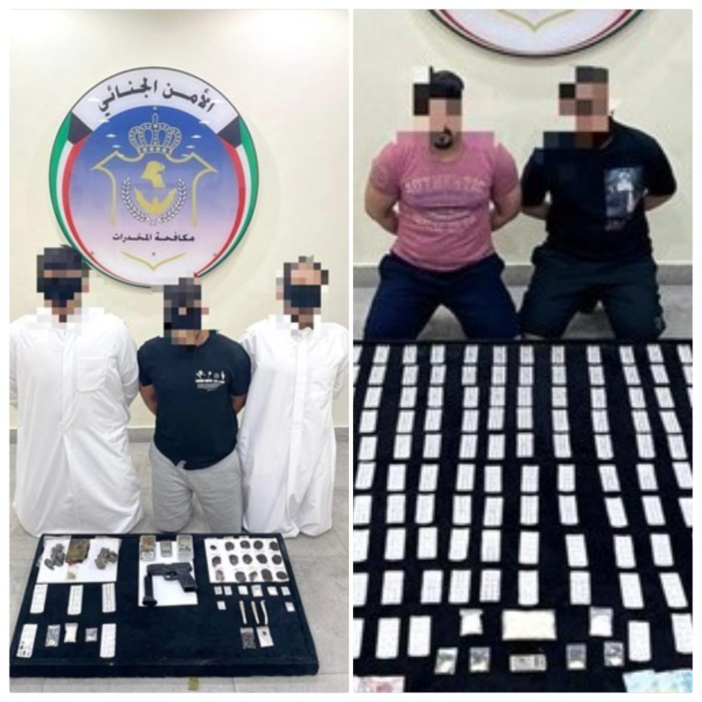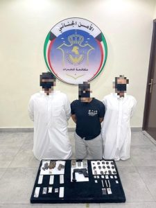 ضبط 39 تاجر عثر بحوزتهم على 14 كيلو مخدرات وحبوب وأسلحة وحصيلة بيع وخمور بالكويت
