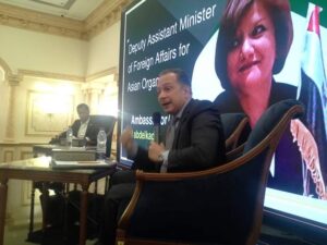 وتحدثت السفيرة أمل سلامه على أن العلاقات المصرية الاسيويه قديمه جدا منذ الرئيس الراحل جمال عبدالناصر وتأسيس حركة عدم الانحيازفى ستينيات القرن الماضى والتى نصت على تعزيز العلاقات وتعاون الجنوب جنوب ، مضيفة اننا ومنذ تولى الرئيس السيسى شهدت العلاقات طفرة كبيرة جدا فى العلاقات الاسيوية ، علاوة على العلاقات والزيارات الرئاسية مع الصين واليابان ، واطلاق الصين مبادرة الحزام والطريق و تطويرها بشكل رسمى فى المبادرة ، مؤكدة على تشجيع العلاقات والتبادل التجارى ودور الازهر الشريف فهو منارة علم ويقدم المفاهيم بشكل معتدل ويدعو للتسامح ، بالاضافة الى علاقات مع الهند وباكستان وكوريا الجنوبية واندونيسيا والسياسة الخارجية المصرية تستند لتحقيق التوازن مع كل دول العالم .