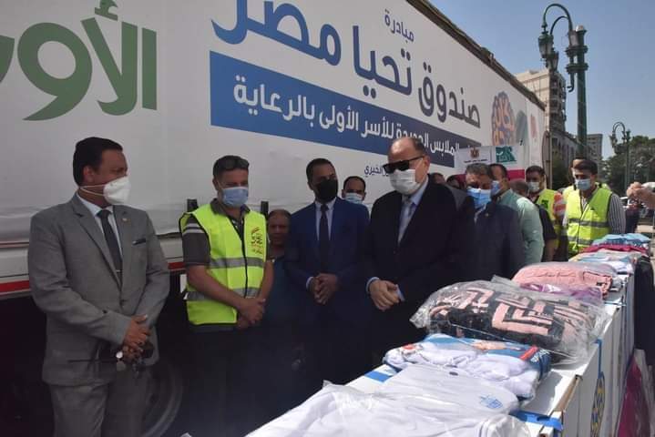 حيث تفقد محافظ أسيوط وصول الشاحنات أمام ديوان عام المحافظة التي تشمل 25 سيارة تريلا وسيارتين جامبو محملين بعدد 46 ألف كرتونة غذائية جافة بوزن 11 كيلو للكرتونة ضمن مبادرة “بالهنا والشفا” و15 ألف قطعة ملابس وتيسير زواج 20 فتاة من الأسر الأولى بالرعاية ضمن مبادرة “دكان الفرحة” و17 كرسي غسيل كلوي ضمن مبادرة “كلنا جنبك” وذلك تمهيدًا لتوزيعها على الأسر الأولى بالرعاية بقرى ونجوع ومراكز المحافظة.