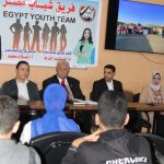 كما تحدث مع اعضاء لجنه الناشئين والبراعم عن فريق شباب مصر بدايته وتاسيسه وكذلك وتحدث عن مبادره فريق شباب مصر واتحدث عن الهجره الغير الشرعيه واسبابها واخطارها على الشباب والمجتمع