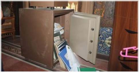 من مسئول بالفندق باكتشاف (مالك الفندق) فتح باب غرفة مكتبه ووجود قطع بباب الخزينة خاصته وسرقة محتوياتها مبالغ مالية (عملات أجنبية).