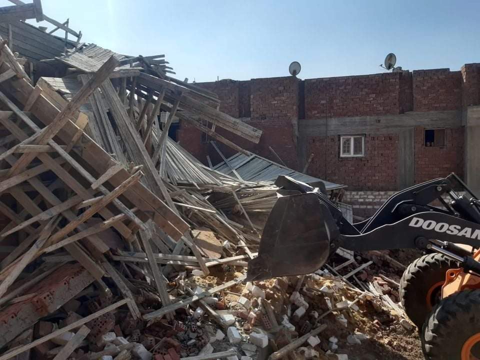 كما قام مركز ومدينة منشاة القناطر بإزالة حالات بناء مخالف وتعديات على اراضى املاك دولة بمنطقة ابو غالب بغرب الرياح بالإضافة إلى إزالة حالتين تعدى على أراضى زراعية بقرى ذات الكوم وبرقاش على مساحات 60 : 80 متر وقد تم تسليم المخالف للشرطه الى جانب إزالة شدة خشبية تم إقامتها بالمخالفة على مساحة 200متر بقرية الإخصاص.