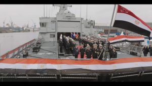 وقام الفريق / أشرف عطوة قائد القوات البحرية برفع العلم المصرى على الفرقاطة ” القدير ”