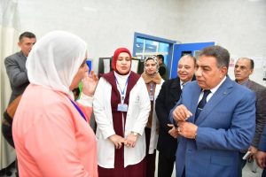 يرافقه الدكتور أحمد العدل نائب المحافظ، وبحضور الدكتور تامر مدكور وكيل وزارة الصحة