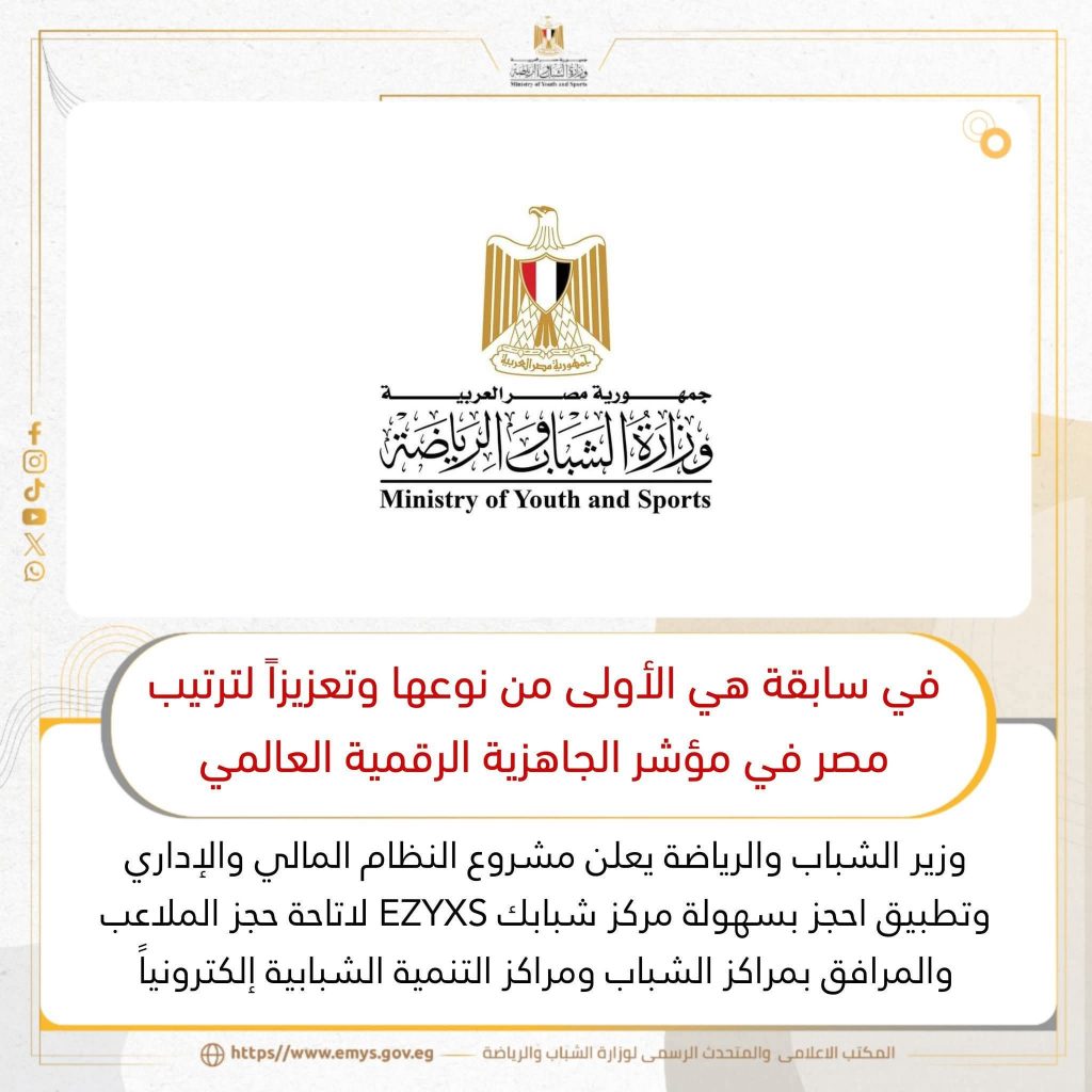 وأكد وزير الشباب والرياضة أن النظام المالي والإداري وتطبيق «احجز بسهولة مركز شبابك – EZYXS» يمثل نموذجًا وطنيًا رائدًا في دمج التكنولوجيا بالإدارة العامة، ويسهم في دعم اتخاذ القرار القائم على البيانات، وتعزيز مبادئ الشفافية، بما يتماشى مع رؤية مصر 2030 وخطط الدولة لبناء مصر الرقميه