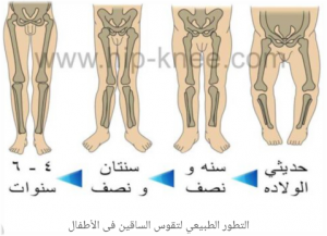 وأغلب حالات التقوس تكون غير مقلقة اذا كانت زاوية التقوس صغيرة حتى العام الثاني من الولادة