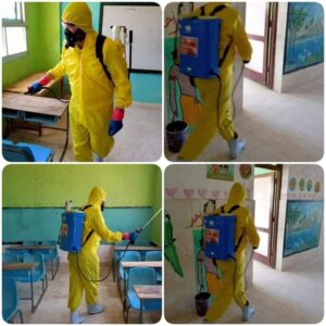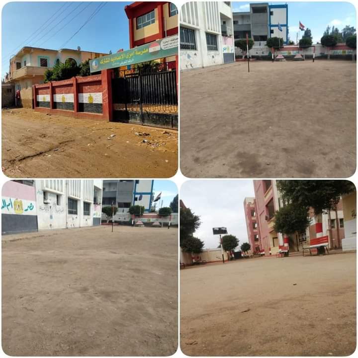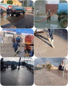 رفع تجمعات المياة بنطاق المدارس والشوارع المؤدية إليها وحملات لتعقيم المدارس إستعداداً لإمتحانات الشهادة الإعدادية غداً .