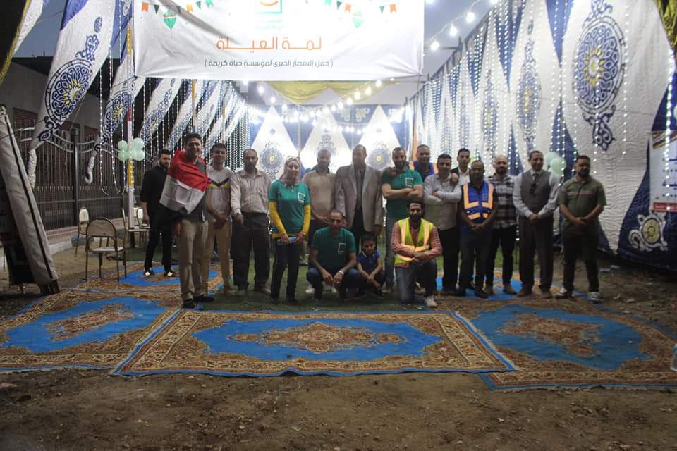 وكوكبه متنوعه من شباب المبادرة حياه كريمه الذين شاركوا بروح التعاون واللهفه لتجهيز الافطار للرواد والمسافرين وأهل القري وسط ملحمه جميله