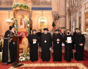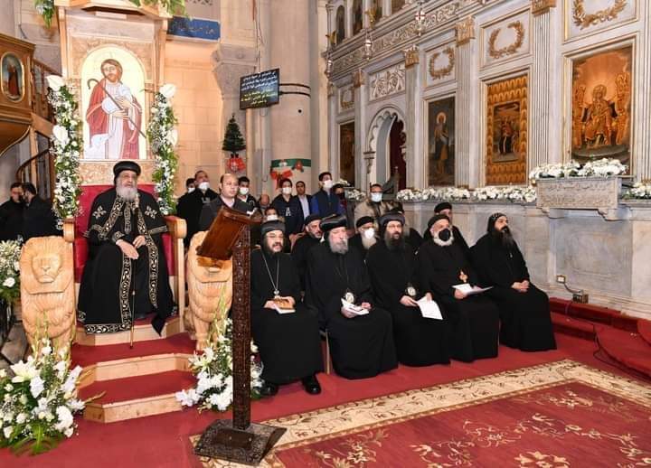 صلى قداسة البابا تواضروس الثاني مساء اليوم تسبحة كيهك، في ليلة رأس السنة الميلادية، بالكاتدرائية المرقسية بالإسكندرية،